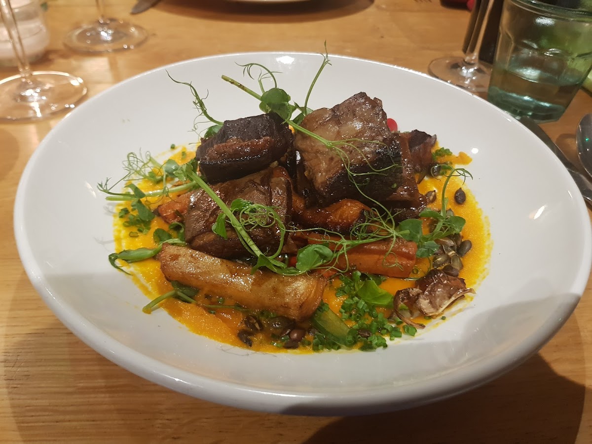 One of the must-try dishes is the Salmon Scotch Egg, a twist on the classic, packed with flavor and perfectly complemented by a side of Yorkshire Tapas. For something a bit heartier, the Beef Short Ribs are tender and packed with rich, smoky flavor, making it a popular choice for meat lovers. Another standout is the Sunday Roast Lamb, a traditional favorite that never disappoints.