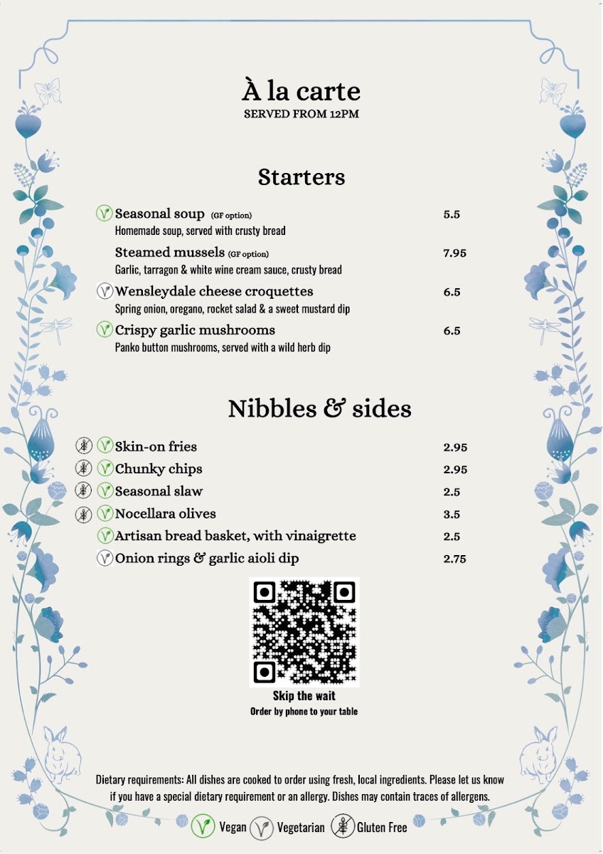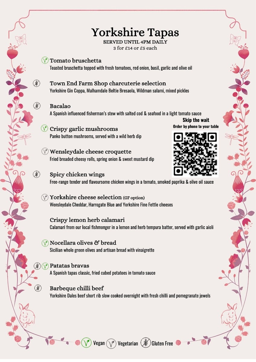 The Secret Garden Bistro Menu is thoughtfully curated to highlight seasonal, locally sourced ingredients. The standout dish for me was the Yorkshire lamb rump, served perfectly pink with a rich red wine jus-succulent and deeply satisfying. Their vegetarian options also shine, particularly the wild mushroom risotto, which was creamy, aromatic, and generously portioned. For dessert, the sticky toffee pudding with clotted cream was indulgent and beautifully balanced in sweetness.